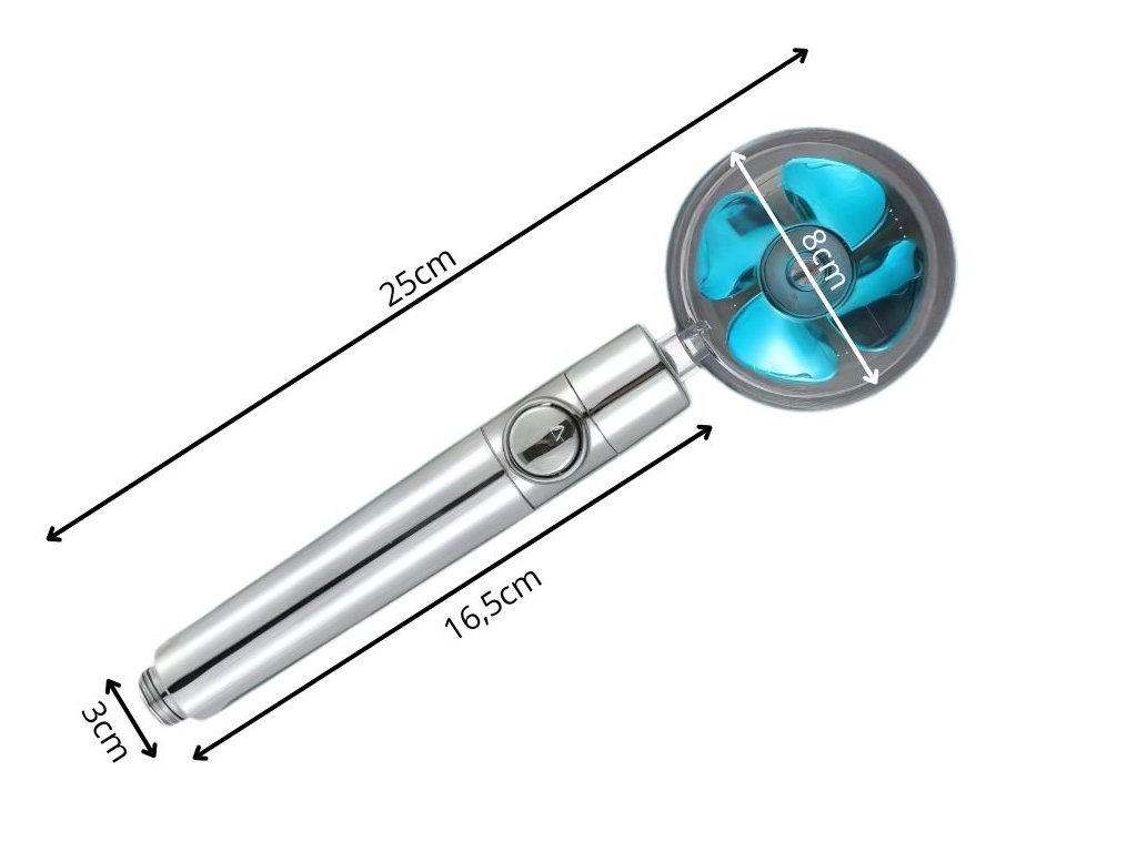 Sprchová hlavice s vyměnitelným turbo filtrem s ventilátorem