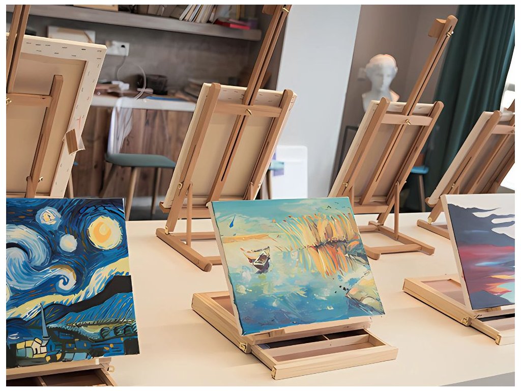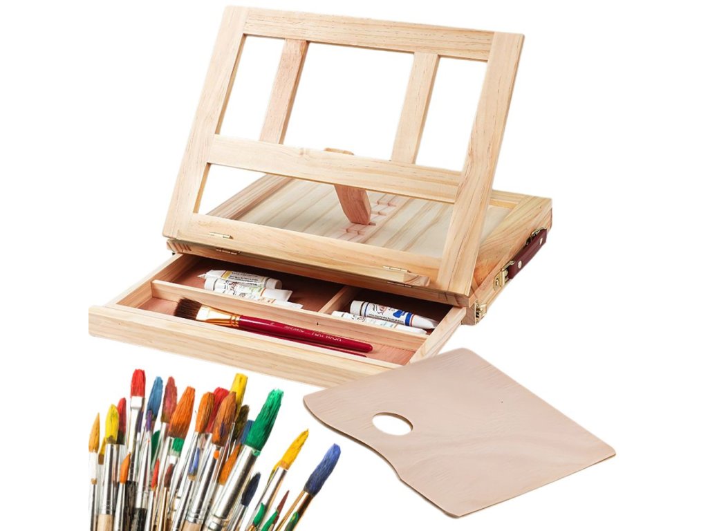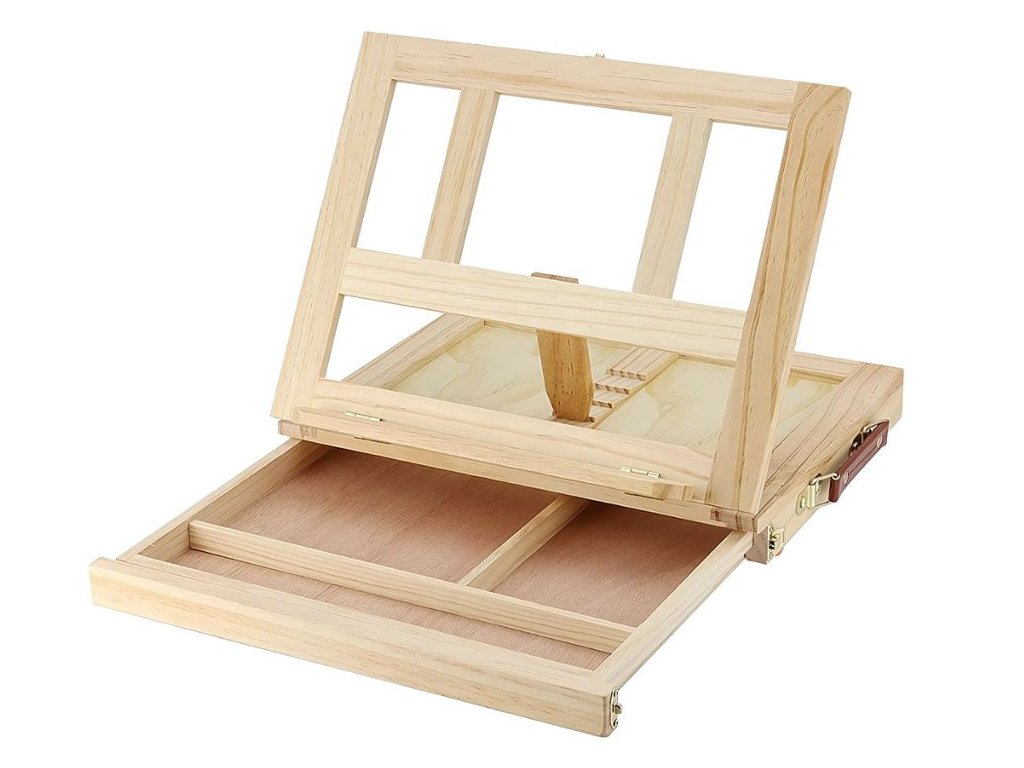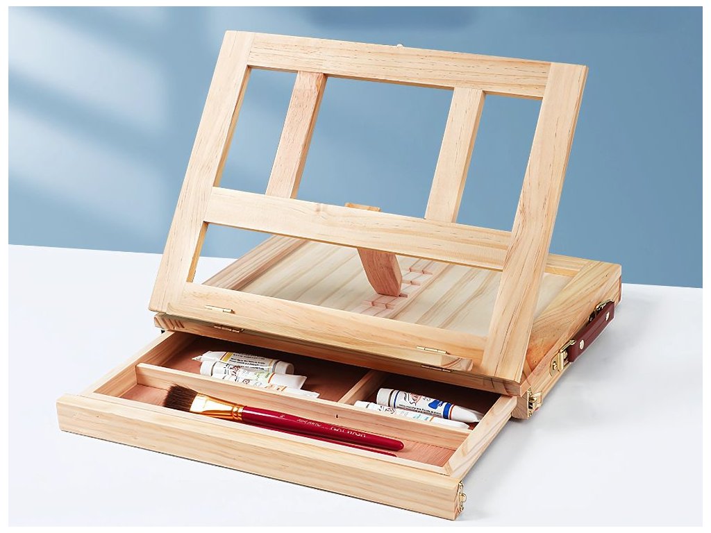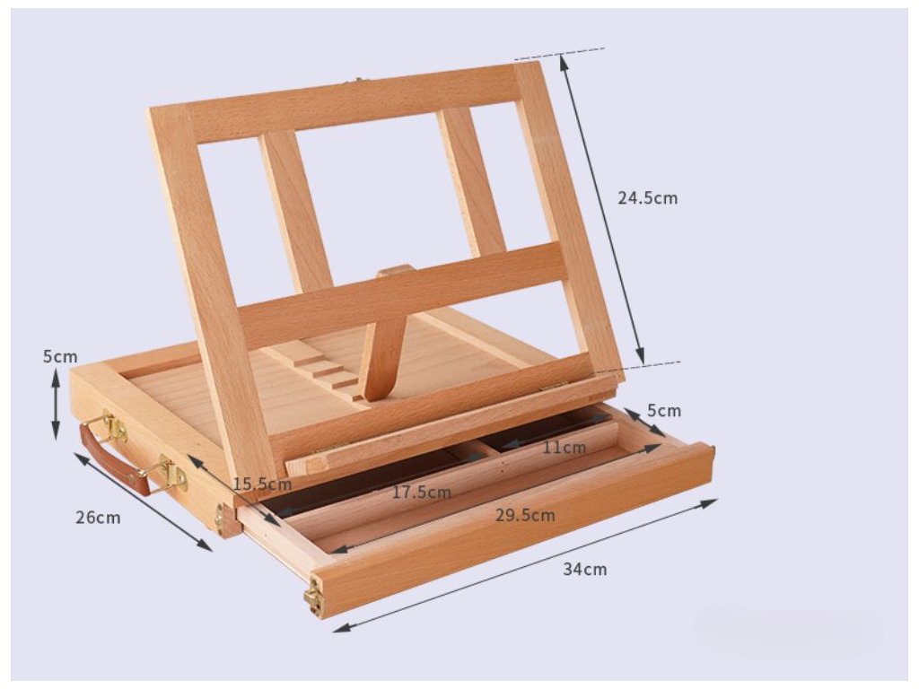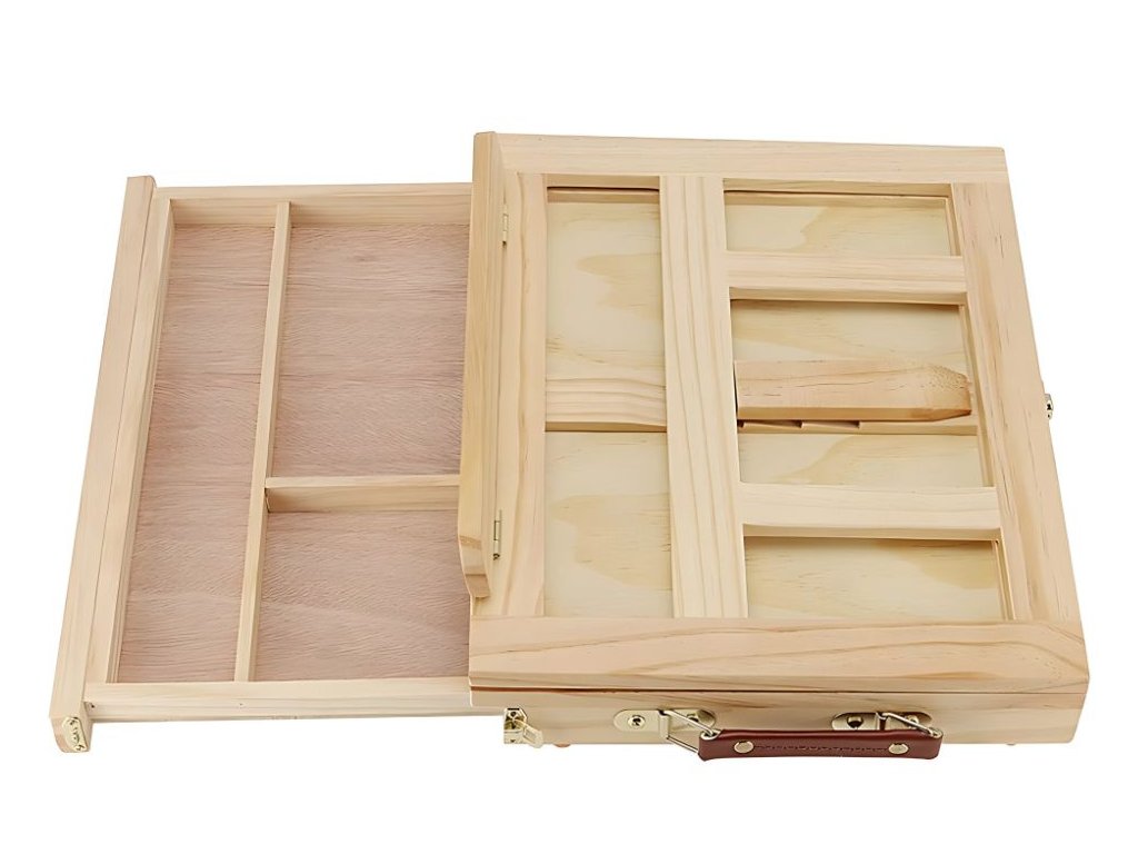 Praktický stolní stojan v podobě dřevěného kufříku je ideálním řešením pro umělce, kteří si cení pohodlí a organizace. Díky své kompaktní konstrukci a možnosti skládání je ideální pro práci v interiéru i exteriéru. Je vybaven nastavitelným sklonem, takže umožňuje přizpůsobit pracovní úhel podle vašich individuálních preferencí a zajišťuje pohodlí při malování nebo kreslení.