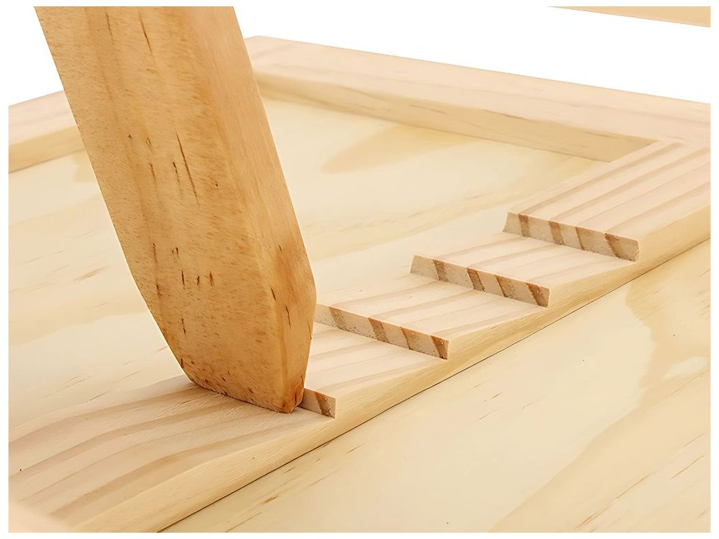 Stojan má vestavěnou zásuvku s přihrádkami pro pohodlné uložení štětců, barev a dalšího malířského příslušenství. Je vyroben z vysoce kvalitního přírodního dřeva, je odolný a stabilní, přesto lehký a snadno se přenáší. Je vhodný pro plátna a bloky různých velikostí, takže je univerzálním nástrojem pro každého umělce.