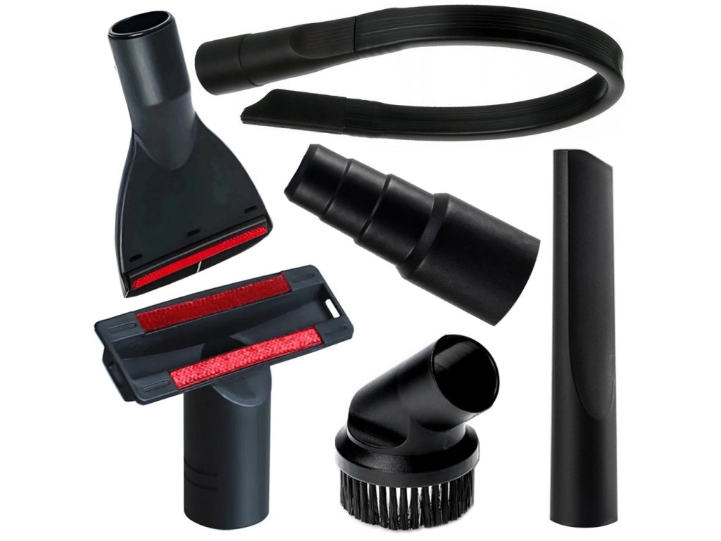 Sada obsahuje řadu nástavců, jako jsou kartáče, úzké stěrky, kartáče na čalounění, které vám umožní efektivně vysávat různé povrchy od tvrdých podlah až po choulostivý nábytek.