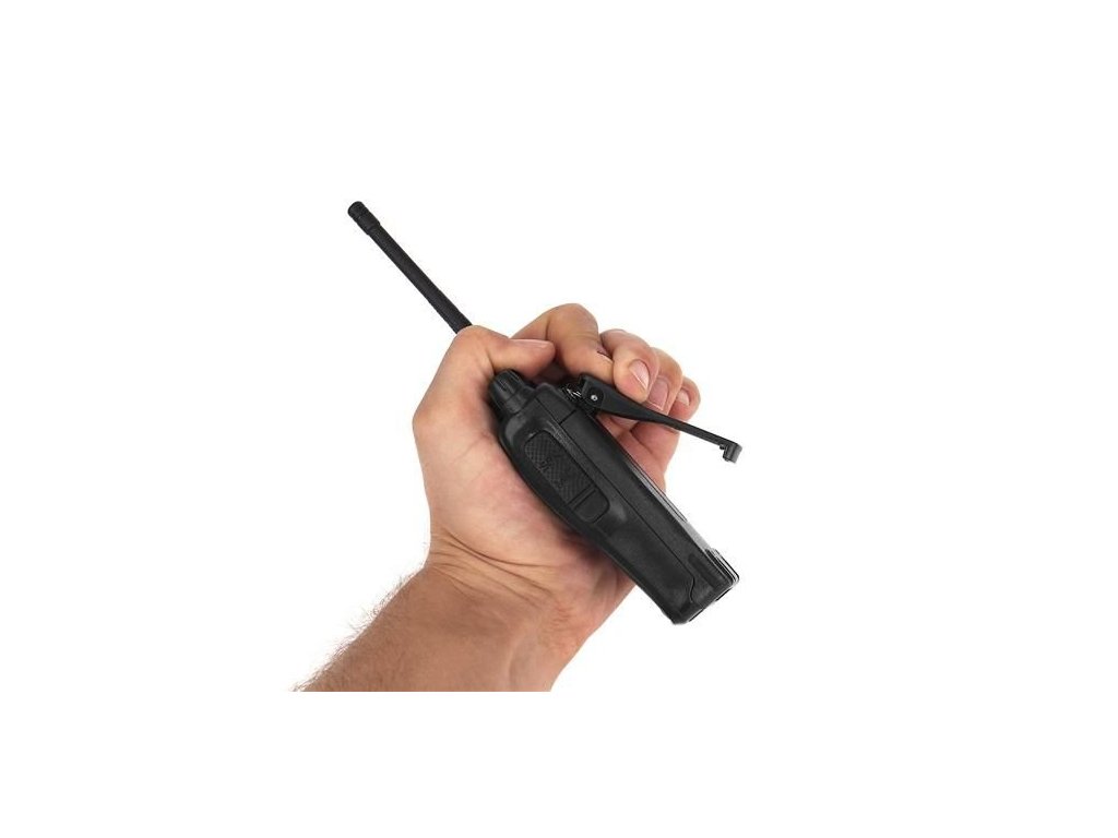 Vysílačka je malá, lehká a praktická , vždy ji můžete mít u sebe. Má rukojeť, která vám umožní připevnit se na opasek , nebo jednoduše - kalhoty, navíc je tu vodítko, které si můžete dát na ruku. Sada sluchátek vám umožní vložit vysílačku do kapsy a používat ji pouze. Kabel může být připevněn k mikině díky připojené sponě.