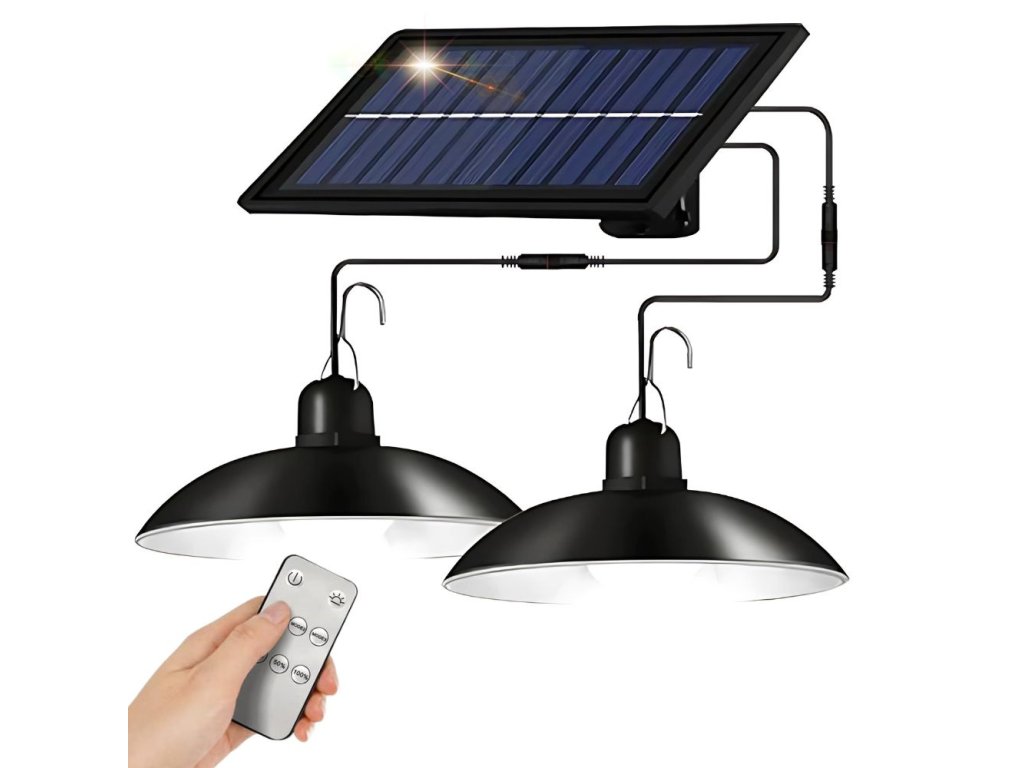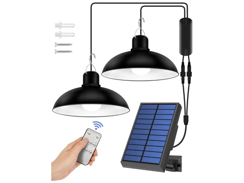 VENKOVNÍ SOLÁRNÍ LED ZÁVĚSNÁ LAMPA S DÁLKOVÝM OVLÁDÁNÍM SOUMRAKOVÝ SENZOR 2KS