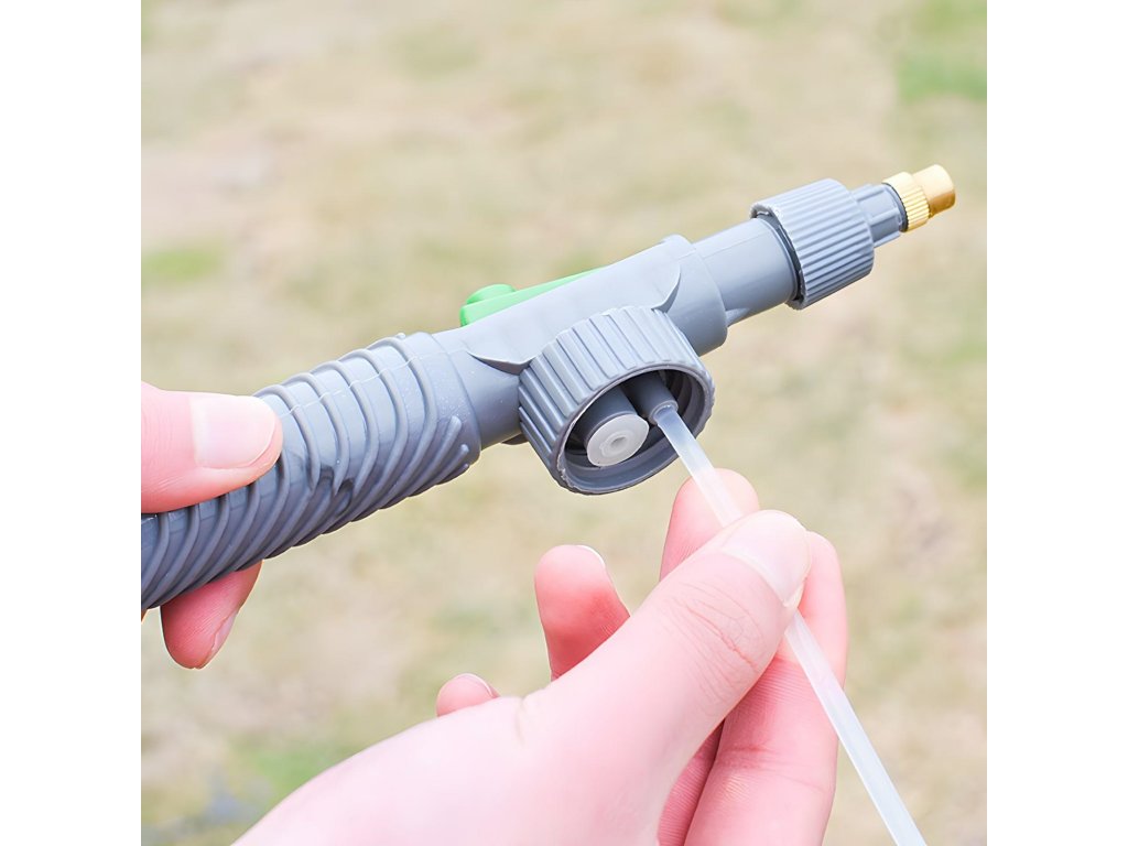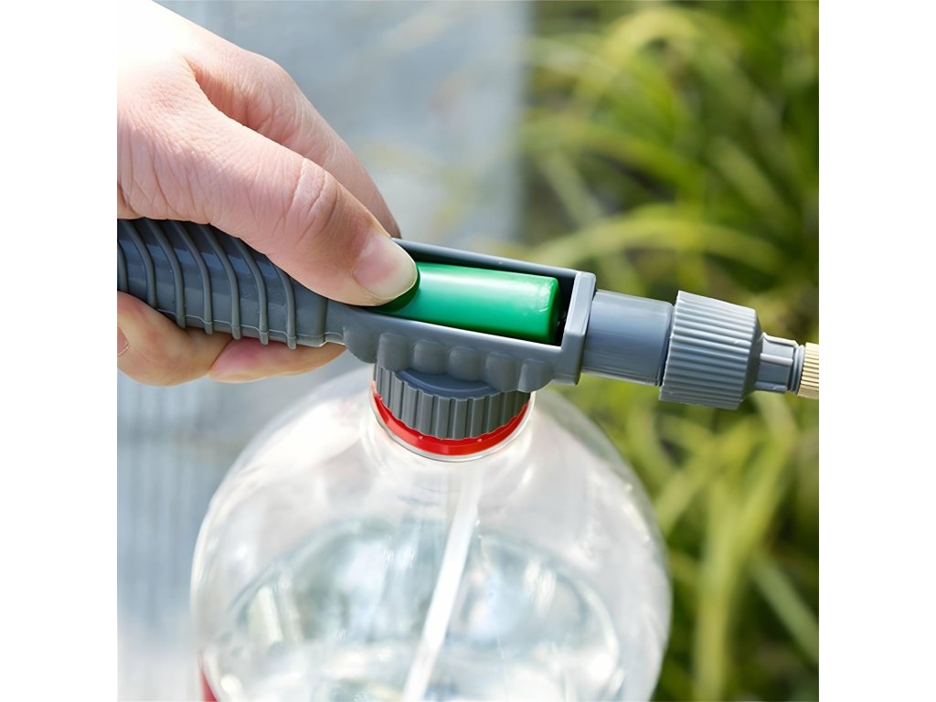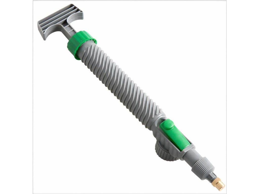 Všestranný ruční tlakový postřikovač s nastavitelnou tryskou. Určen pro montáž na PET lahev (standardní závit). Robustní mosazná tryska zajišťuje dlouhé a bezproblémové používání. Tento postřikovač je ideální pro letní a jarní úklid zahrady.