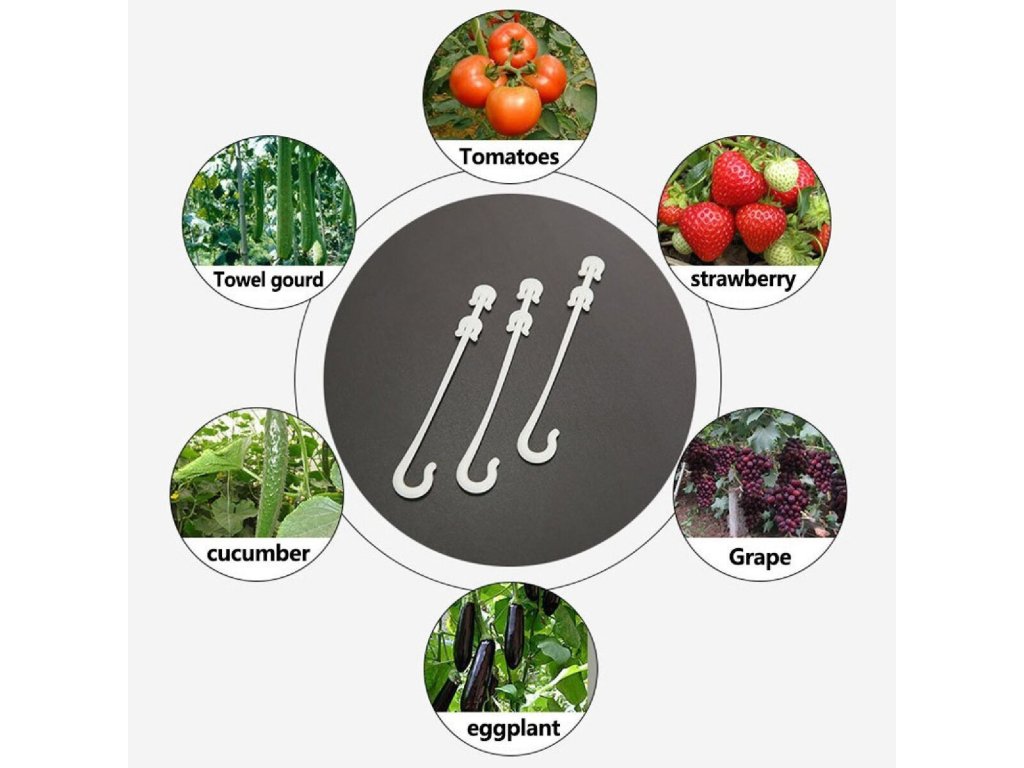 Háčky na ovoce a zeleninu Merco Fruit Hooks 13 je jednoduchá, leč užitečná pomůcka každého zahrádkáře. Háčky se používají jako dodatečná opora pro nezralé ovoce i zeleninu, abyste snížili pravděpodobnost zlámání stonků a nechali tak plodiny dozrát. Háčky jsou ideální například pro rajčata, okurky, vinnou révu, cukety, lilek, jahody apod. Háčky jsou vyrobené z polypropylenu, díky čemuž jsou odolnější proti povětrnostním podmínkám. Uvedená cena je za jedno balení s 50 háčky. - balení: 50 ks - materiál: PP - délka: 13 cm - hmotnost balení: 75 gDoplňkové parametry
