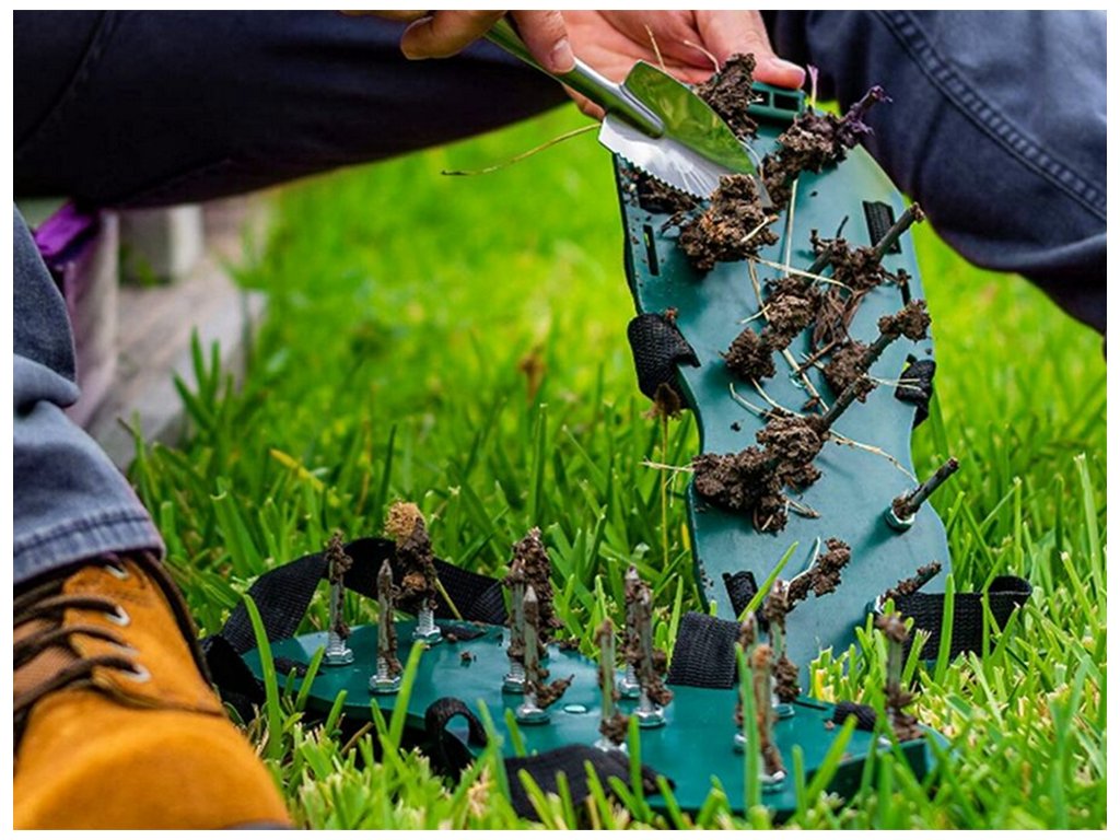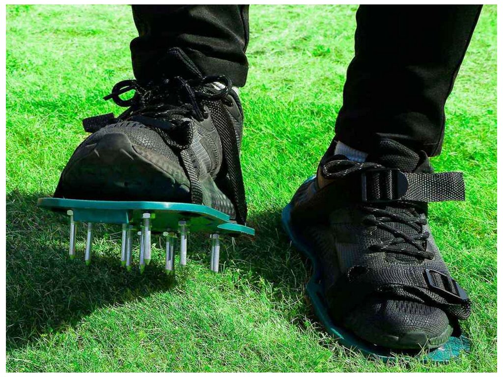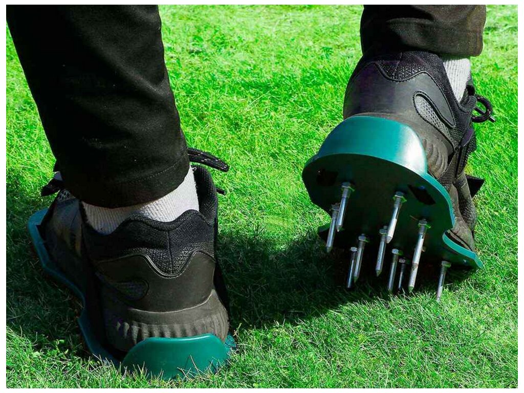 Provzdušňovací návleky na boty skvěle zlepšují podmínky růstu trávy. Provzdušňování usnadňuje přístup kyslíku ke kořenům, lepší pronikání vody a hnojiv.