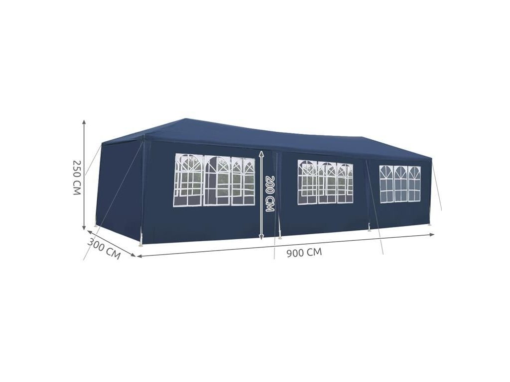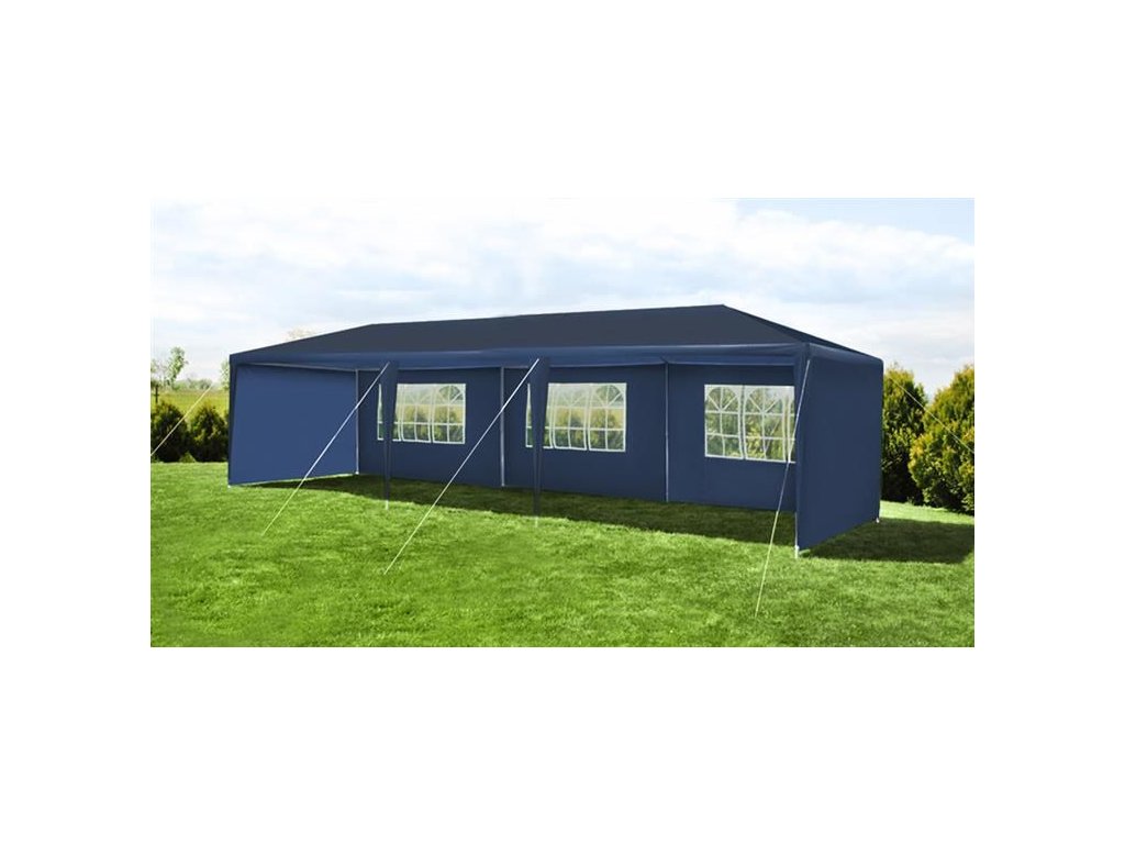 Zahradní párty stan 3 x 9 m + 8 bočních stěn, modrý P5522
