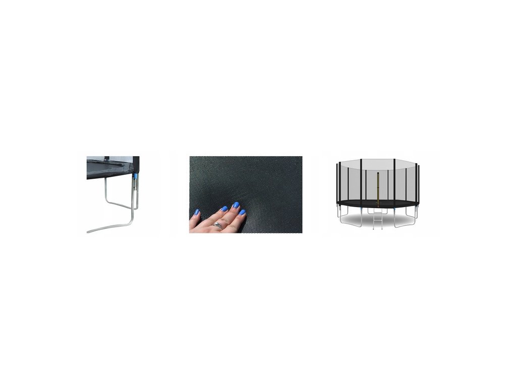 Plátno odrazové plochy je vyrobeno z kvalitního pružného polypropylénu a je uchyceno pomoci 60 pružin. S cílem zajistit uživateli co nejvyšší bezpečnost, jsou trampolíny vybaveny bezpečnostní sítí o výšce 160 cm. Tato bezpečnostní síť je vyrobena z vysoce kvalitních a pevných syntetických materiálů. Ocharanná síť je k trampolíně připevněna tak, aby nijak neomezovala volný prostor ke skákání a veškeré tvrde spoje jsou zajišťeny vyměkčovací ochrannou.