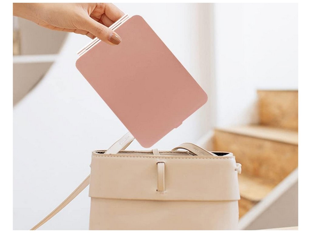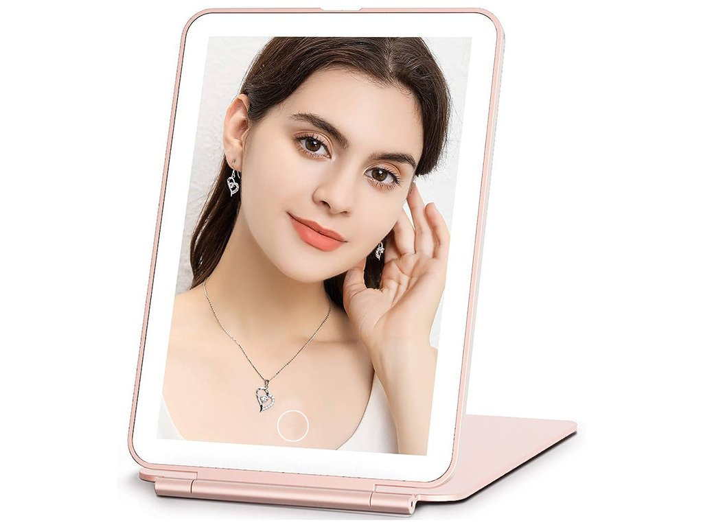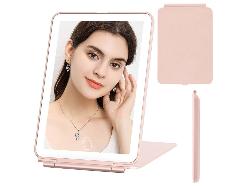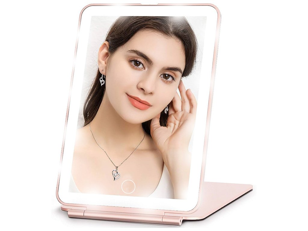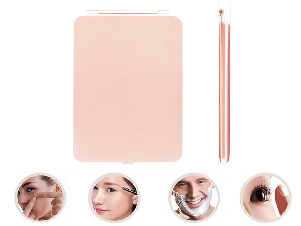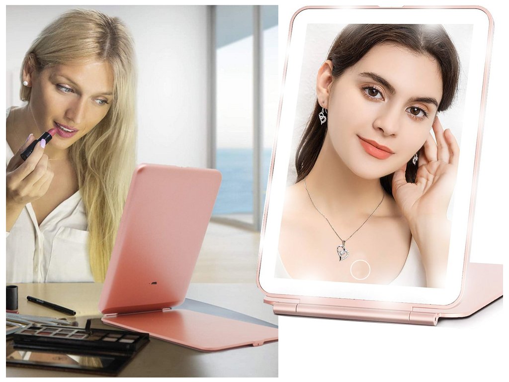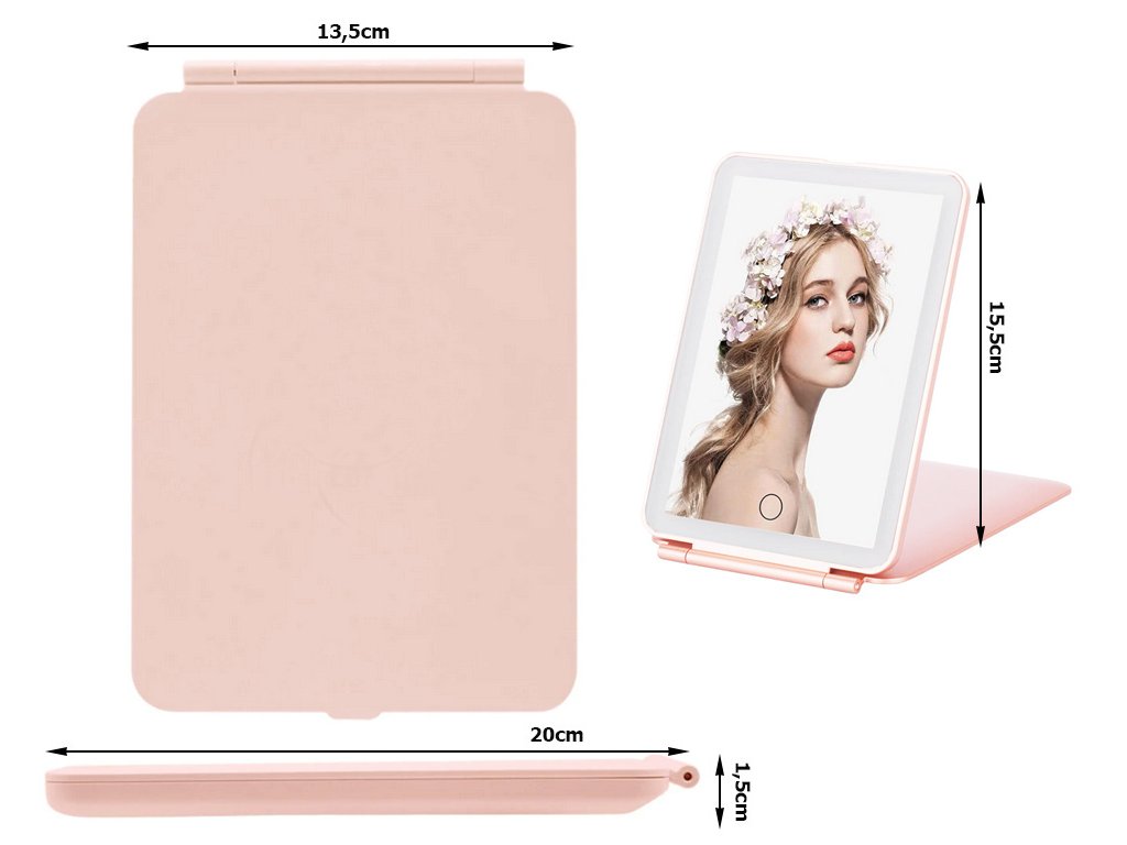 Led osvětlené make-up zrcadlo skládací cestovní růžová