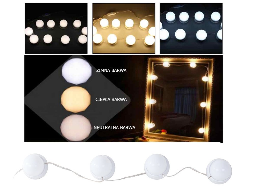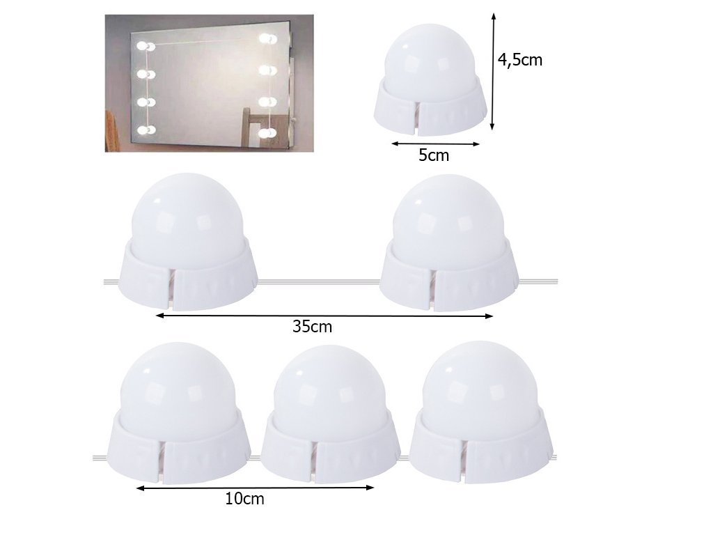 Sada LED světel je ideální pro zrcadla , toaletní stolky nebo jako dekorace do každé místnosti. Díky takovému osvětlení si uděláme dokonalé líčení. Vhodné pro profesionální kosmetické salony i pro domácí použití.